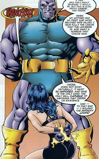 Thanoseid es la creación de los ilustradores: John Ostrander y Gary Frank. Como su nombre lo indica, combina la apariencia, las habilidades y las malvadas intenciones de Thanos (Marvel) y Darkseid (DC Comics).