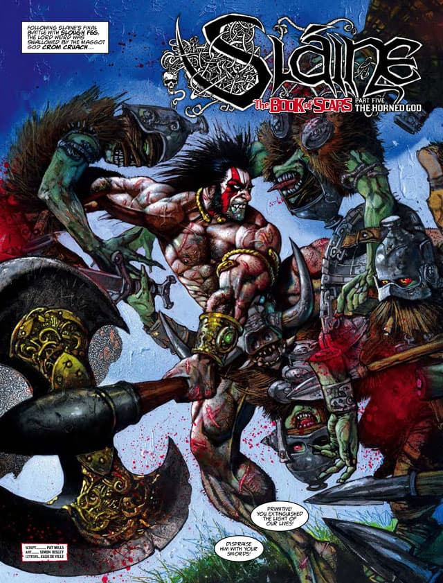 Sláine fue publicado por primera vez en las páginas del semanario británico 2000 AD (sí, el mismo que publicó Zenith, de quien hablé un tiempo atrás), creado por el guionista Pat Mills y dibujado por su entonces esposa Angela Kincaid en el año 1983 en el número (o Prog) 330 de la mencionada publicación.