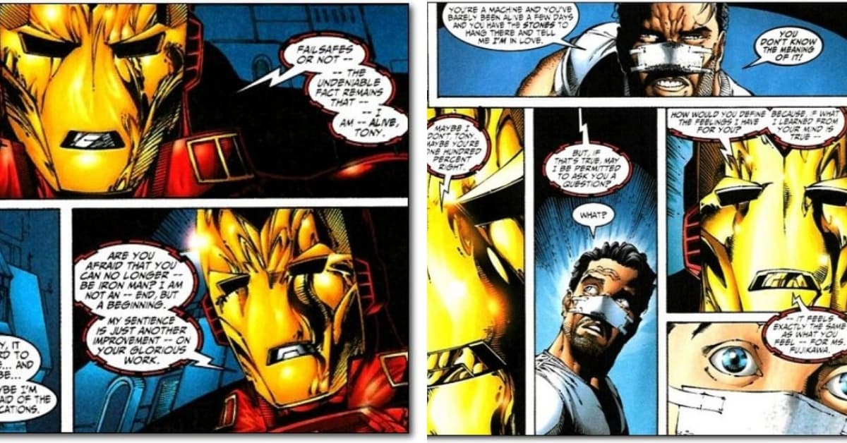 Además, un hacker con la tecnología y conocimientos podría intervenir sus trajes (como ya lo han hecho). También ha pasado que uno de sus trajes se vuelva consciente de su existencia y se enamore de Tony (WTF?).