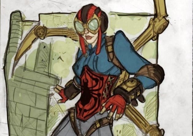 Curioseando por el Internet, seguramente más de uno habrá dado con las versiones steampunk y rockabilly de varios superhéroes a cargo de Denis Medri. Si les agradaron estas versiones, les gustará saber que este artista está a cargo de la segunda historia, que nos presenta a May Reilly: Lady Spider. Y no solo eso, sino que nos trae también versiones steampunk de los Seis Siniestros, en la historia más sólida de este primer número.