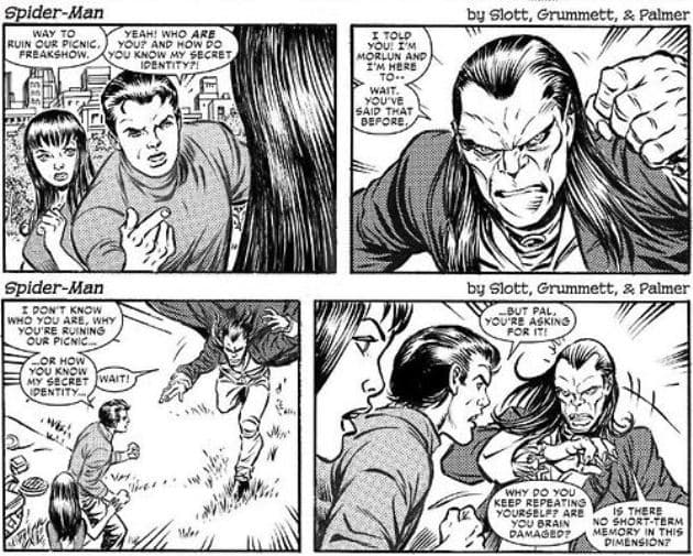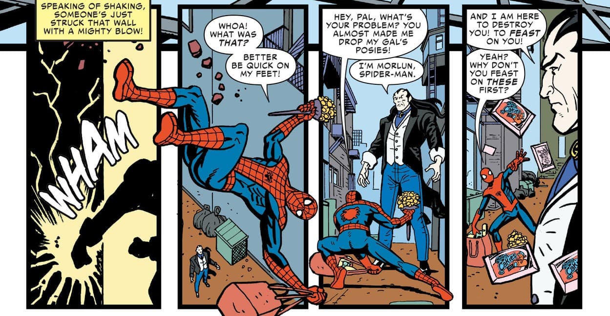 Dan Slott sigue cumpliendo su promesa de presentar a absolutamente todos los Hombre Araña posibles. En esta edición vemos una de esas historias de una sola página que en realidad solo eran publicidad para pastelillos en los 60 y 70: