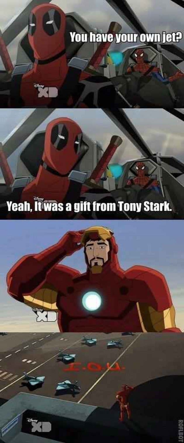 Deadpool: Sí, fue un regalo de Tony Stark.