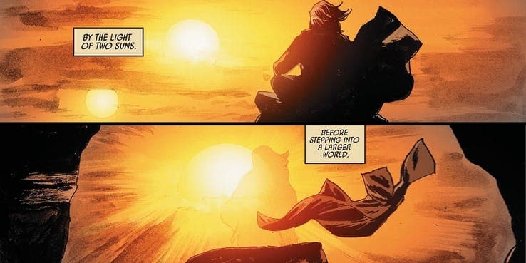 Mientras tanto, es necesario y desafortunado aclarar que si bien todo lo que sucede en los cómics es canónico de alguna manera, el simple hecho de nos ser escritos por las mismas personas que delinean las películas les da un aire «menos canónico» que el de las películas. No obstante, ver estos cuadros de texto nos sirve como consuelo y le da un poco más de significado a la muerte del héroe más grande de toda la galaxia.
