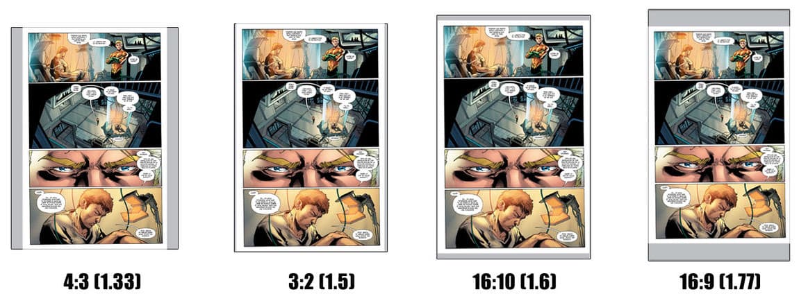 Las tablets con mejores Relaciones de Aspecto para cómics son las 3:2, siempre y cuando la idea sea ver la hoja entera y al 100% (sin cortarla, zoomearla, etc.).