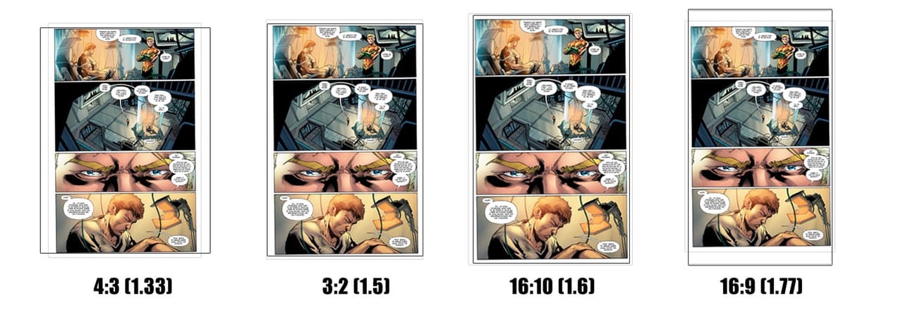 Distintas Relaciones de Aspecto con una hoja de cómic completa.