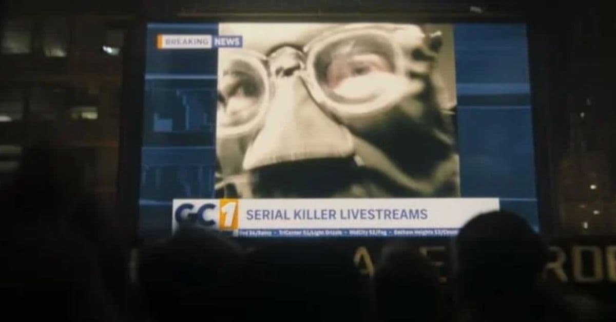 Hay algunas escenas donde las pantallas de televisión muestran que el noticiero de Gotham está reportando sobre los livestreams de un asesino serial, que podemos ver es la versión del Acertijo interpretado por Paul Dano en esta película.