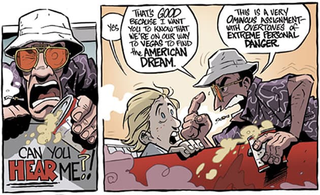 Aunque ya hay varias adaptaciones al cine del trabajo de Hunter (vale la pena mencionar Rum Diaries y la misma Fear And Loathing in Las Vegas, ambas protagonizadas por Johnny Depp en el papel del buen doctor), el traspaso de su obra literaria al formato de la novela gráfica es algo que no había sucedido hasta ahora. Solo hacía falta que Troy Little, junto a la editorial Top Shelf, se dispusiera a llevar la titánica labor de traducir el psicodélico viaje de un par de amigos al corazón del sueño americano en una novela gráfica.