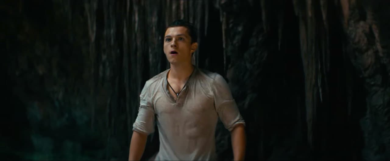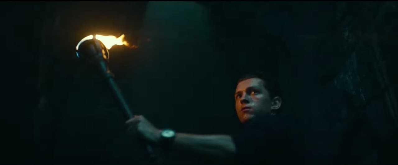 El tráiler inicia con Tom Holland diciendo que hay lugares que no se pueden encontrar en los mapas y se encuentra explorando viejas ruinas con una antorcha.