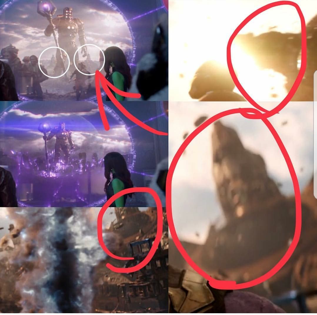 Si prestamos atención, en cierta parte del discurso de El Coleccionista se muestra a uno de los Celestial arrasando con un planeta entero. La geografía de dicho cuerpo celeste fue mostrada brevemente, pero lo suficiente como para compararla con la que aparecería años más tarde en el tráiler de Avengers: Infinity War.