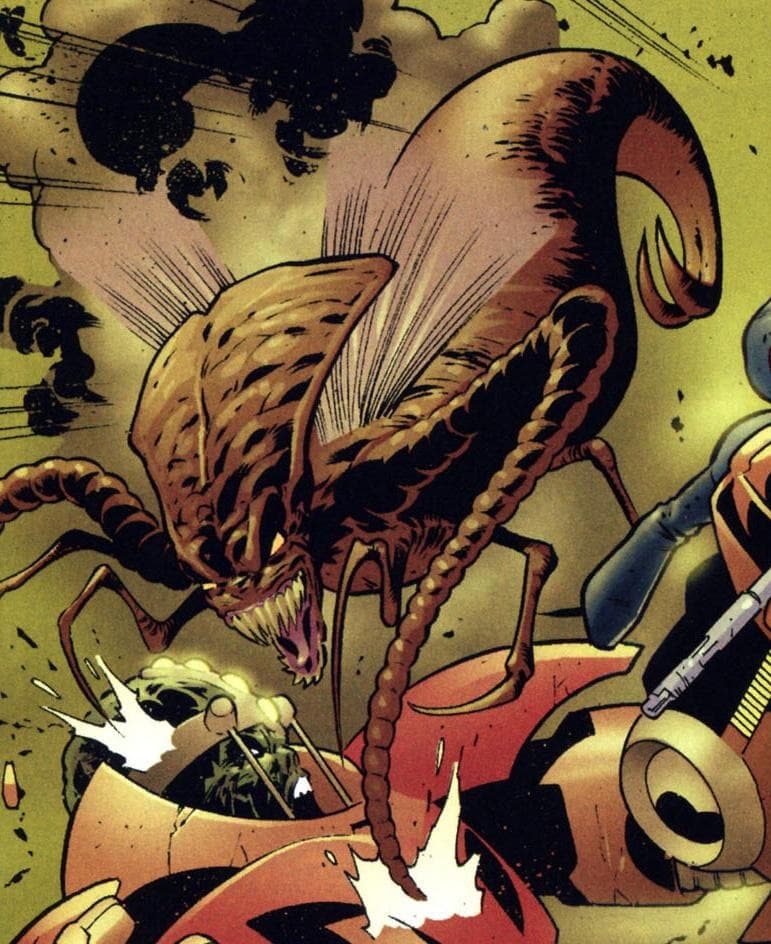 Primera aparición en Incredible Hulk vol. 2 #93 (Mayo 2006). “Sin Nombre” es una de las ultimas reinas Brood (se les llama “reina” a las hembras ya que gestan todas las crías). Su raza siempre fue considerada peligrosa comparándola con una plaga y se ha enfrentado a los X-Men varias veces, son sumamente fuertes y resistentes y el poseer una mente de enjambre las vuelven astutas y crueles. Sin Nombre pierde su lazo mental con su colonia al estar varada en Sakaar, se une a los Warbound considerándolos su nueva colonia y abandona su naturaleza depredadora al proteger a varios niños e infantes de todas las razas. Llega a la Tierra buscando venganza al igual que Hulk y con el tiempo gesta una raza nueva hibrida entre Brood y Nativos de Sakaar como su padre Miek; pero al ver que su nueva prole no tenía mente y serian una plaga asesina para la Tierra decide matarlos (no sin lágrimas en los ojos), con ese acto demuestra lo evolucionada y sensible que se ha vuelto Sin Nombre, que sigue en fuga de S.H.I.E.L.D. con el resto de sus compañeros Warbound.