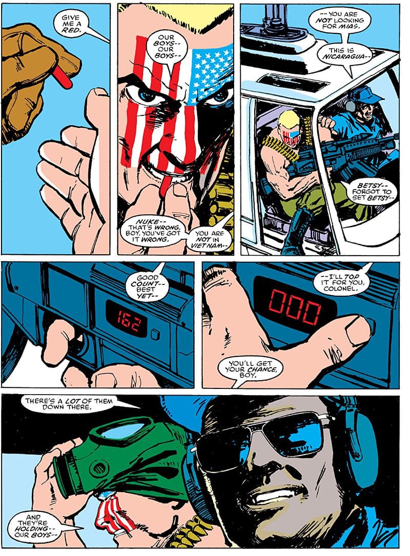 En los cómics, Frank Simpson fue forzado a participar del proyecto Homegrown, un programa que buscaba crear un supersoldado para vencer la guerra de Vietnam con la utilización de mejoras cibernéticas y píldoras de adrenalina para aumentar la agresividad y nublar el miedo de quien las consuma.