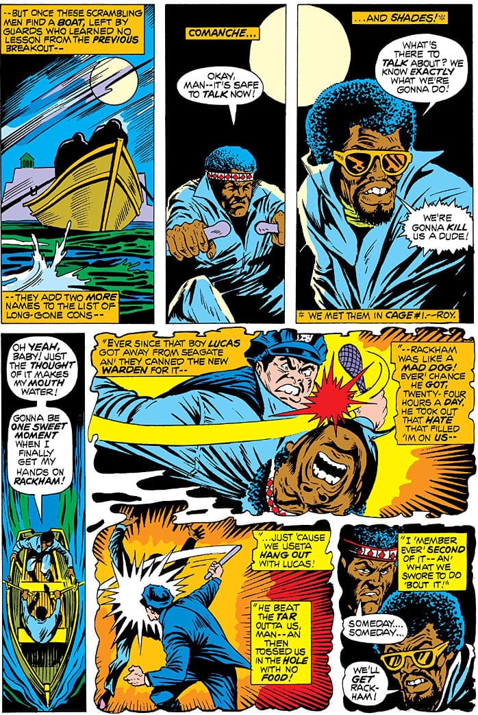 En lo cómics, nadie sabe el verdadero nombre de Shades y es un criminal afroamericano que formó parte de la misma pandilla que Luke Cage y Diamondback. Cuando fue contratado por Ward Meachum para matar a Iron Fist, recibió unos lentes que disparaban energía bioeléctrica.