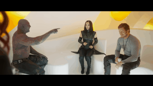 Demasiados dientes y una boca enorme no es una buena señal. Drax y Gamora parecen llevar bien la pelea, a pesar de todo esto.
