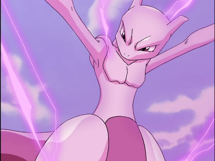 Es un pokémon único en su clase al haber nacido en forma artificial, un clon genético mejorado y potenciado de Mew (uno de los pokémon legendarios). Mewtwo probó ser más inteligente que cualquier pokémon y humano promedio y, hasta donde se puede apreciar, posee poderes de telequinesis, telepatía, hipnosis, manipulación, proyección de energía psíquica y algún tipo de tecnoquinesis (la habilidad psíquica de comunicarse y controlar las máquinas complejas).