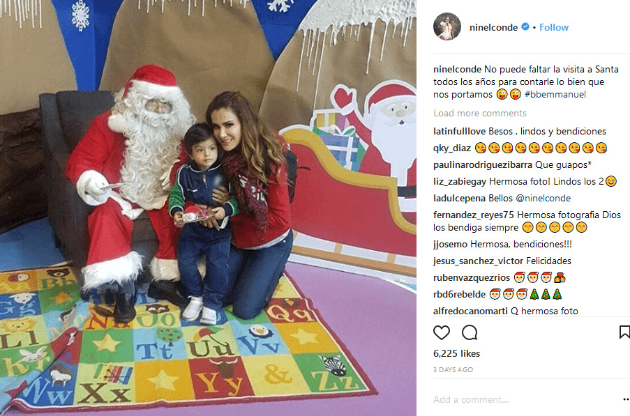 Mientras Giovanni busca encontrarse con su hijo, especialmente en estas fechas tan especiales, Ninel por su parte publicó una imagen en su red social en la que aparece muy sonriente junto a su hijo y un Santa Claus: “ No puede faltar la visita a Santa todos los años para contarle lo bien que nos portamos”, escribió a modo de pie de foto.