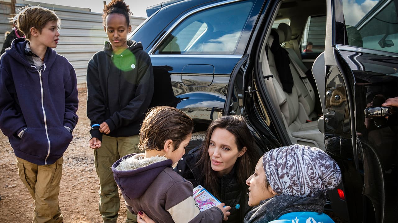 La actriz visitó por quinta vez un campamento de refugiados sirios que se encuentra en Jordania y alberga cerca de 80 mil personas. Jolie estuvo acompañada por dos de sus hijos: Zahara y Shiloh Jolie-Pitt.