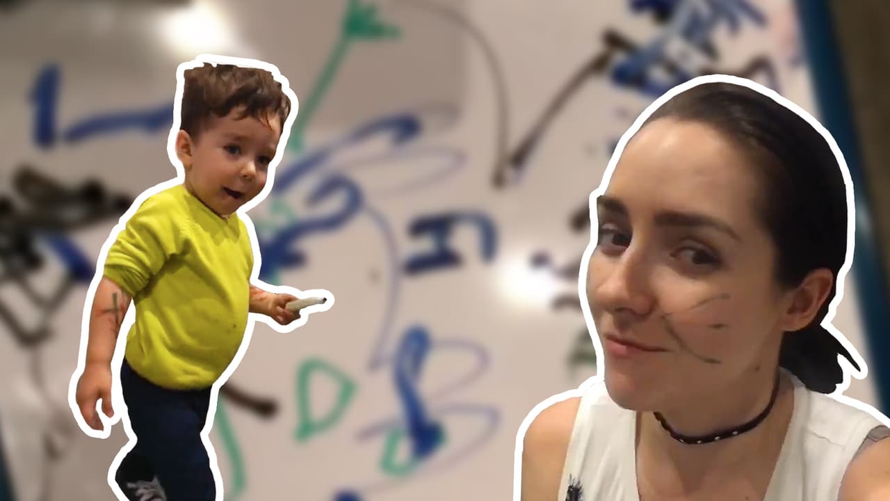 El pequeño Diego está explorando su talento artístico y por ello se puso a dibujar con la ayuda de su mamá en una pizarra con marcadores de colores. Pero se terminó pintado él mismo, luciendo como si llevara tatuajes en sus brazos y cara.