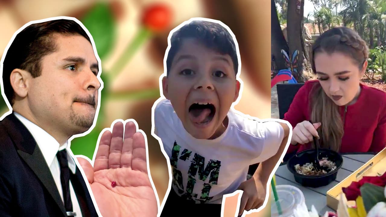 Larry Hernández no se atrevió a probar un chile piquín, pero su novia e hijo no se rajaron y le dieron una lección