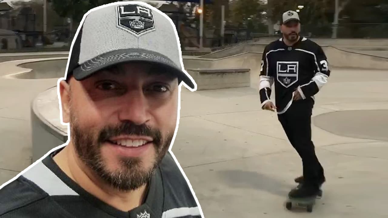 El cantante Lupillo Rivera salió de la rutina y pasó la tarde practicando skateboarding. Por si fuera poco, terminó su día apoyando al equipo de hockey sobre hielo Los Ángeles King’s