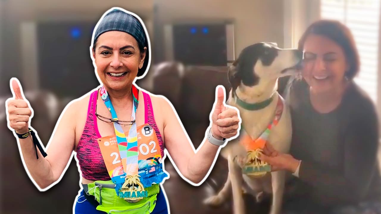 María Antonieta Collins cumplió su sueño de terminar el medio maratón de Miami y compartió su medalla con un compañero especial