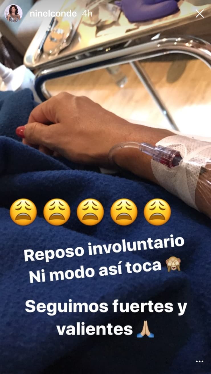 Buscamos a la oficina de representaciones de la actriz y cantante mexicana, pero hasta la publicación de este artículo no hubo ninguna versión oficial de lo que le sucede a Ninel quien parece estar en una cama de hospital con un catatér en su brazo.