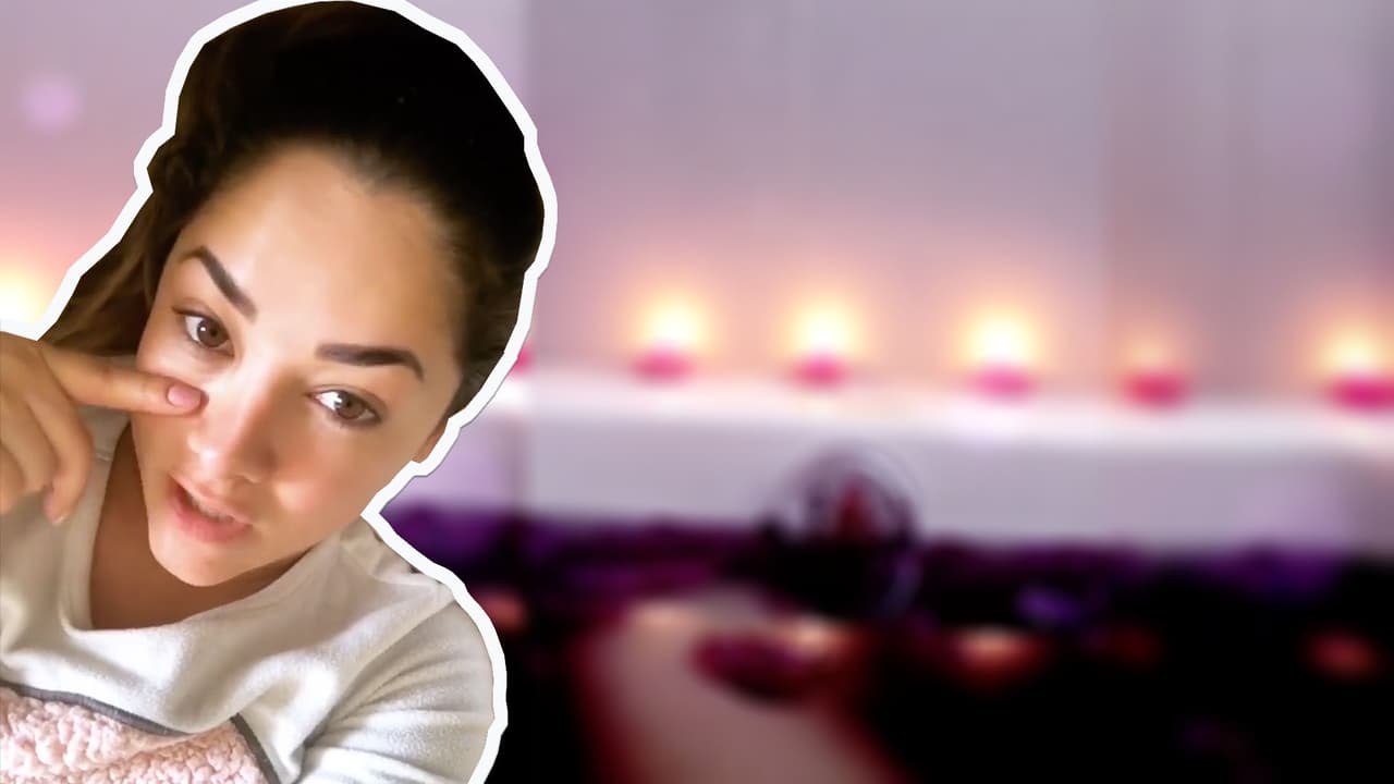La actriz compartió con sus seguidores cómo se la pasa tranquila en casa, levantándose tarde para descansar después de las pesadas funciones de teatro que tiene los fines de semana con la obra ‘Las arpías’. Y qué mejor que aplicándose parches curativos y dándose baños de pétalos de rosas.