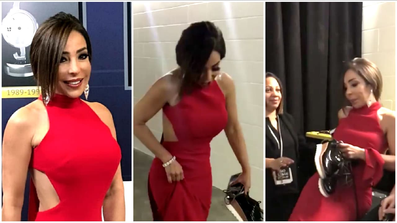 La presentadora de El Gordo y La Flaca tuvo que cambiarse sus tacones y usar zapatos bajos para poder realizar las entrevistas tras bambalinas durante el día del evento.