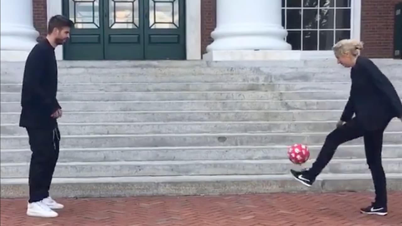 El futbolista catalán estuvo en Boston para realizar un máster en Harvard. Fuera del aula, compartió un momento con su profesora Anita Elberse y mostró lo que puede hacer con una pelota.