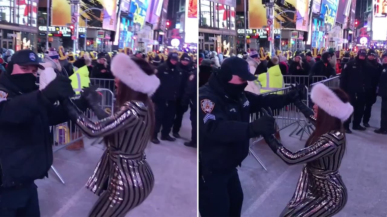 Policía de Nueva York no resistió la belleza de Zuleyka Rivera y terminó bailando ‘Despacito’ en plena celebración de Año Nuevo
