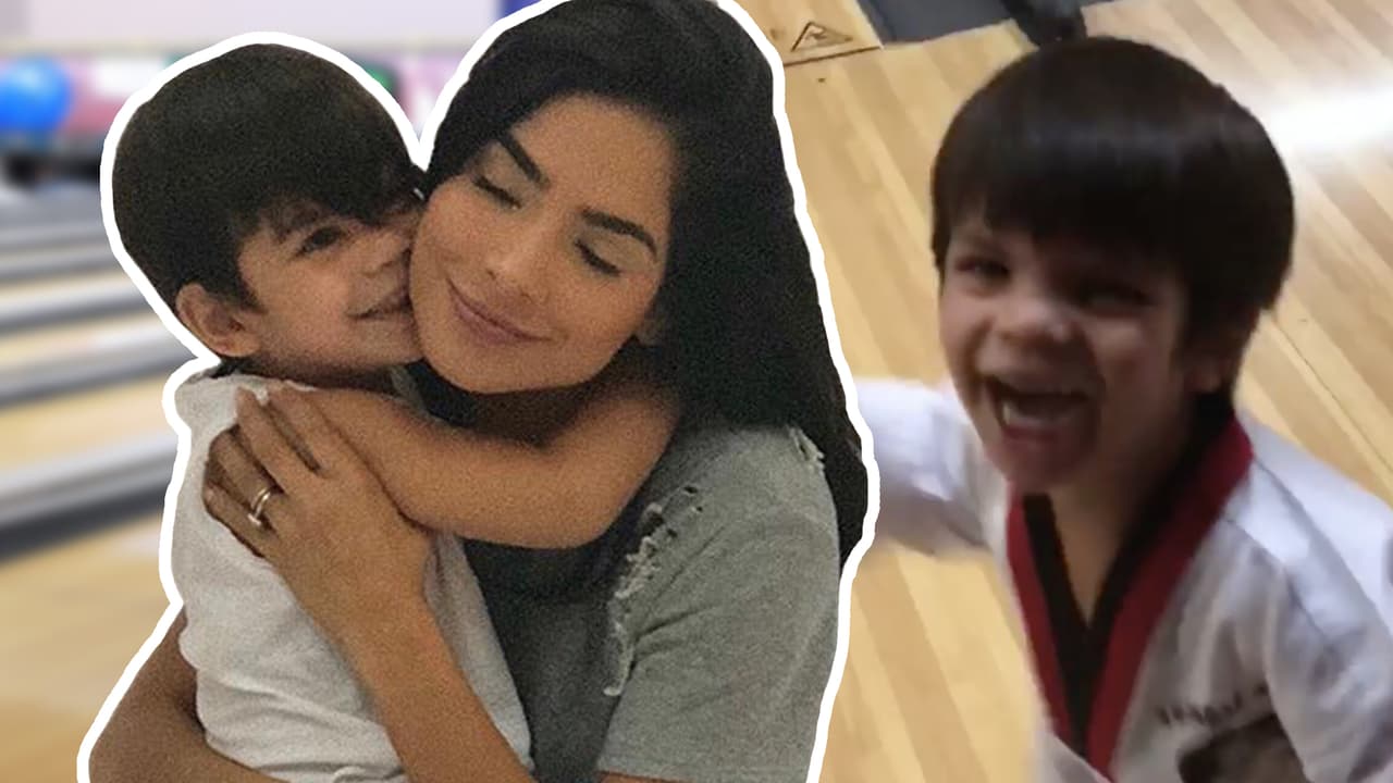 Saltando de emoción: el hijo de Alejandra Espinoza celebra que es mejor jugador de bolos que su mamá