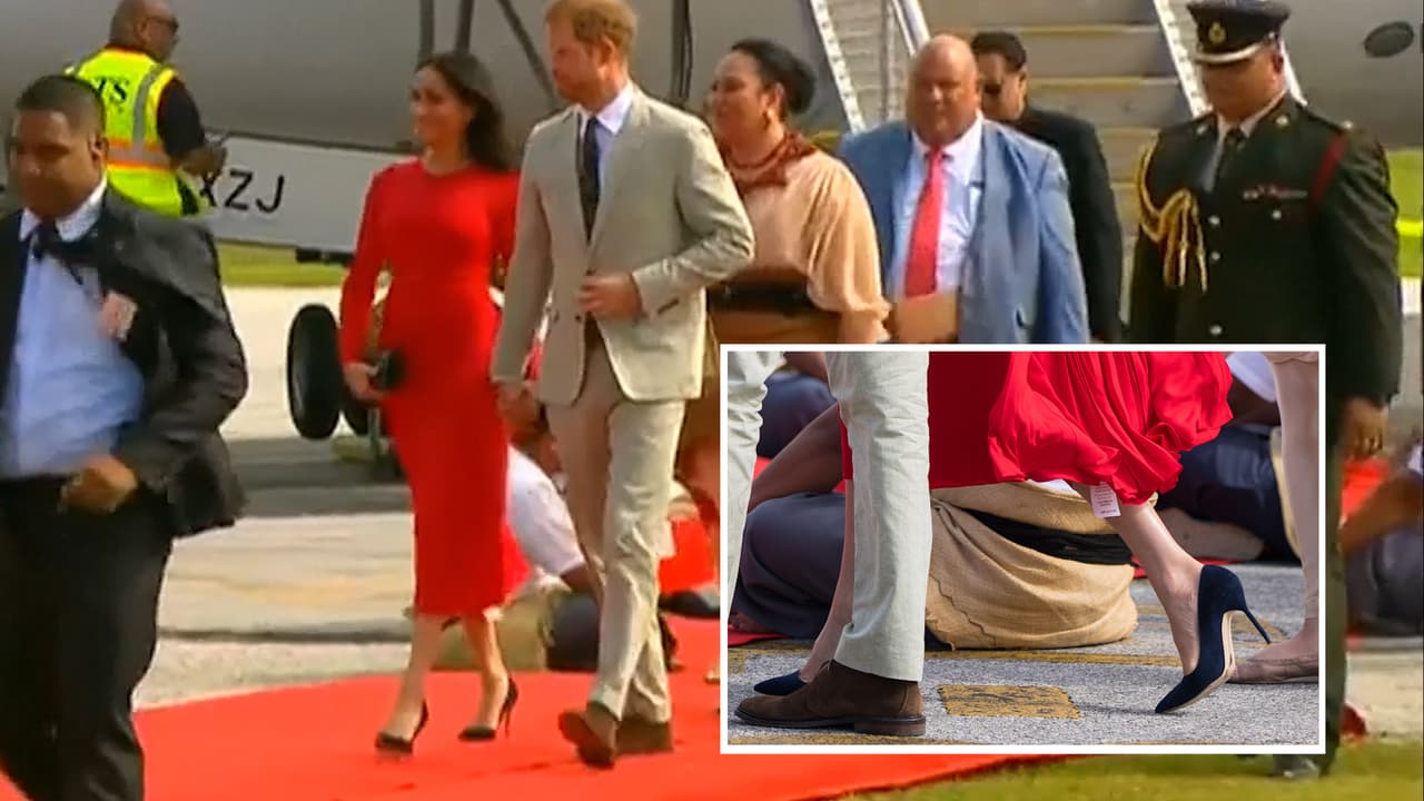 Al llegar a Tonga, Oceanía, la duquesa de Sussex se robó la atención de todos, no por el vestido rojo intenso de Self Portrait que llevaba puesto, sino porque este conservaba la etiqueta. Un descuido fashion de lo más normal para la mayoría de las personas, pero que no se esperaría en una celebridad de la talla de Meghan Markle.