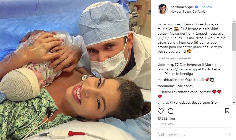 La empresaria Bárbara Coppel compartió los nueve meses de embarazo a través de su cuenta de Instagram, donde sus seguidores fueron testigos de cómo iba creciendo Bastien, e incluso, horas antes de que naciera el pequeño, subió fotografías en familia, a la espera del ansiado momento.