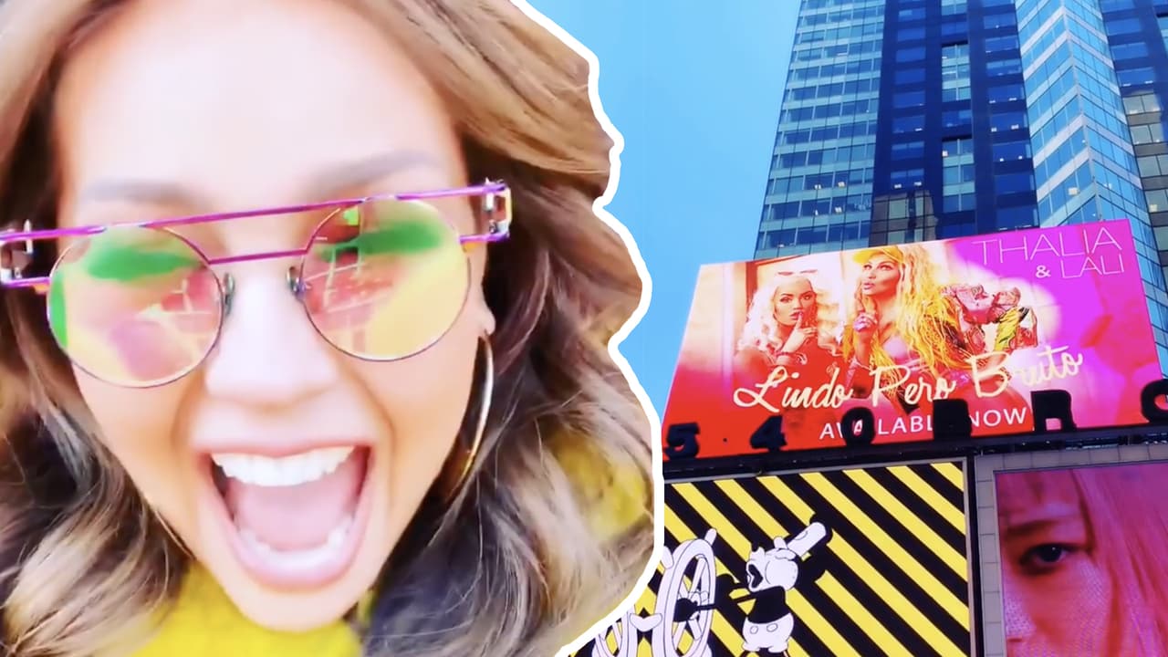 Thalía se dio a la tarea de caminar por las calles de Nueva York sin importarle las inclemencias del clima, pues tenía una motivación muy importante que la llevó a la esquina más famosa de la Gran Manzana. La cantante lucía verdaderamente emocionada, ya que la imagen de ella en compañía de Lali promocionando el sencillo “Lindo Pero Bruto” ocupaba una de las pantallas gigantes de Times Square.