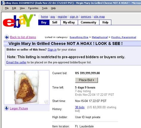 8. La Virgen María decidió bendecir este sándwich. Luego fue vendido en eBay POR 28 000 DÓLARES.