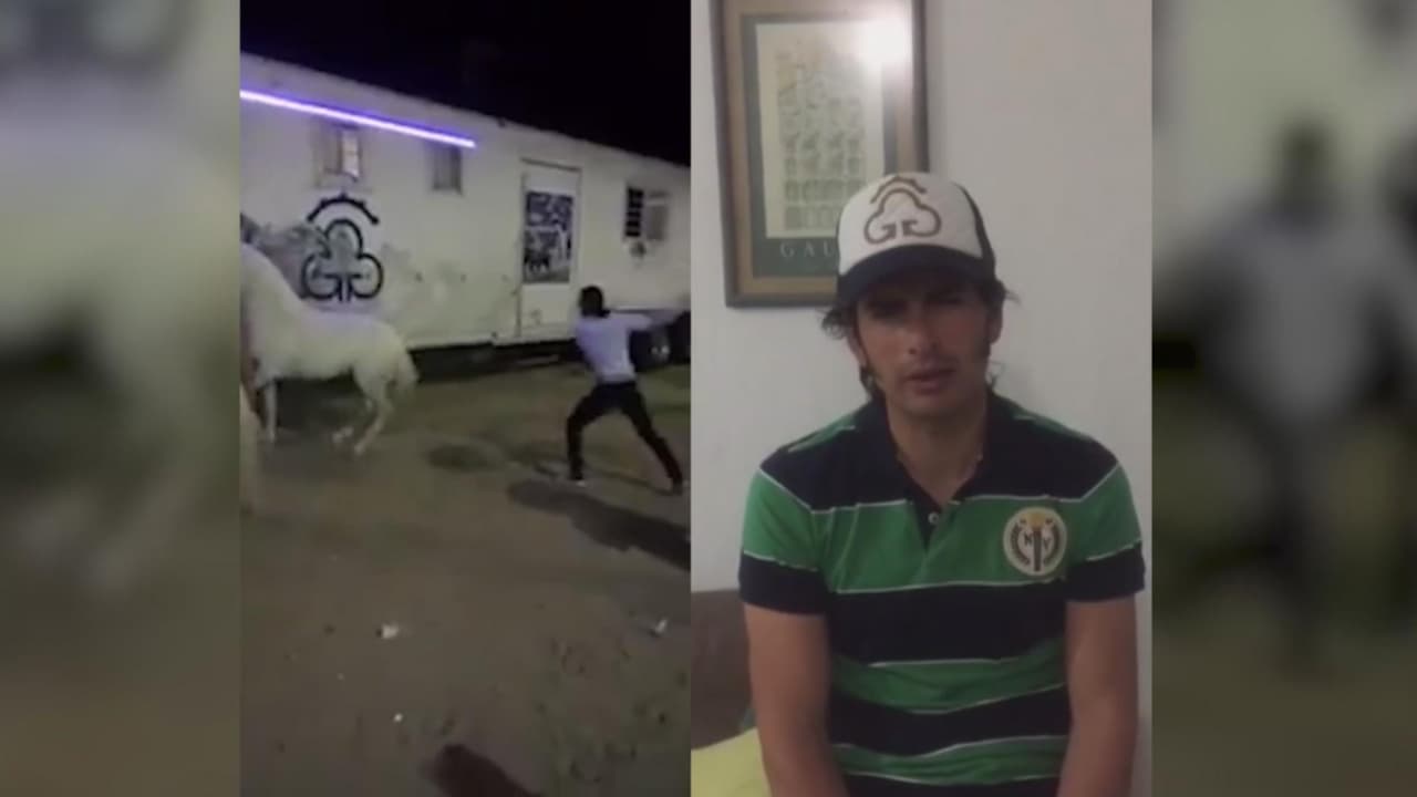 En el video, el caballo está amarrado a una pared. Al acercarse, Gamero es golpeado por el caballo y le pide a uno de sus ayudantes una cadena. Después de golpearlo brutalmente discute con una persona que no se ve en el encuadre de la cámara. "Es como darle una nalgada a un hijo", le dice en su defensa.