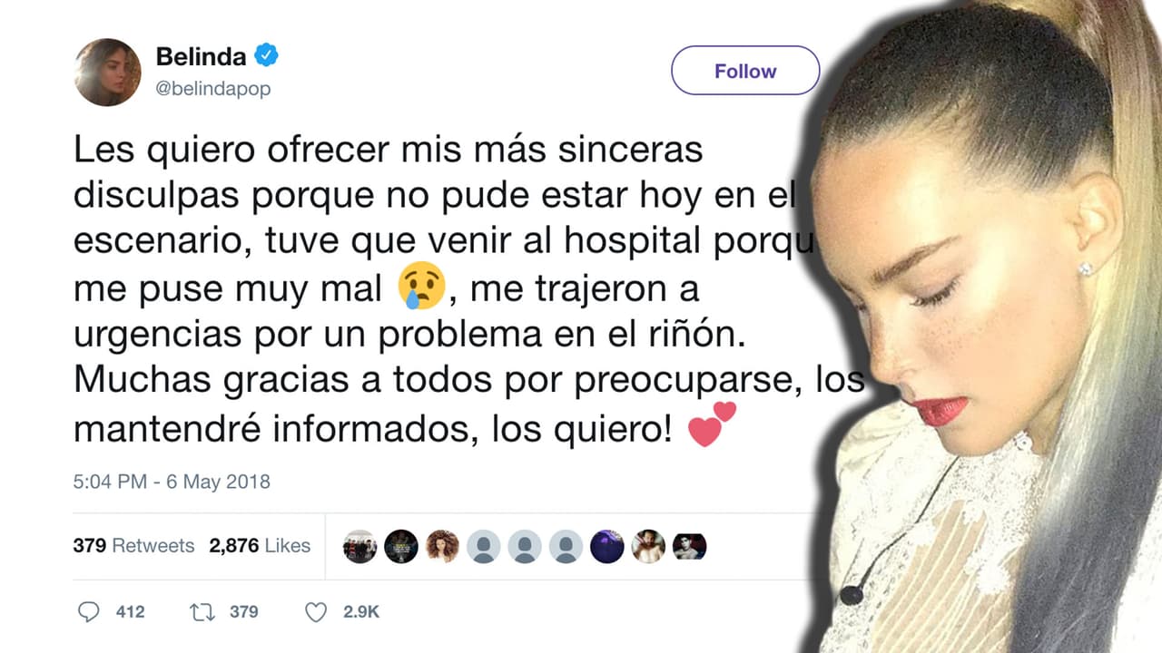 En medio de una gira por España, Belinda se puso mal de salud y fue admitida en un hospital. La cantante mexicana compartió un comunicado en el que se disculpa por no haber podido presentarse.