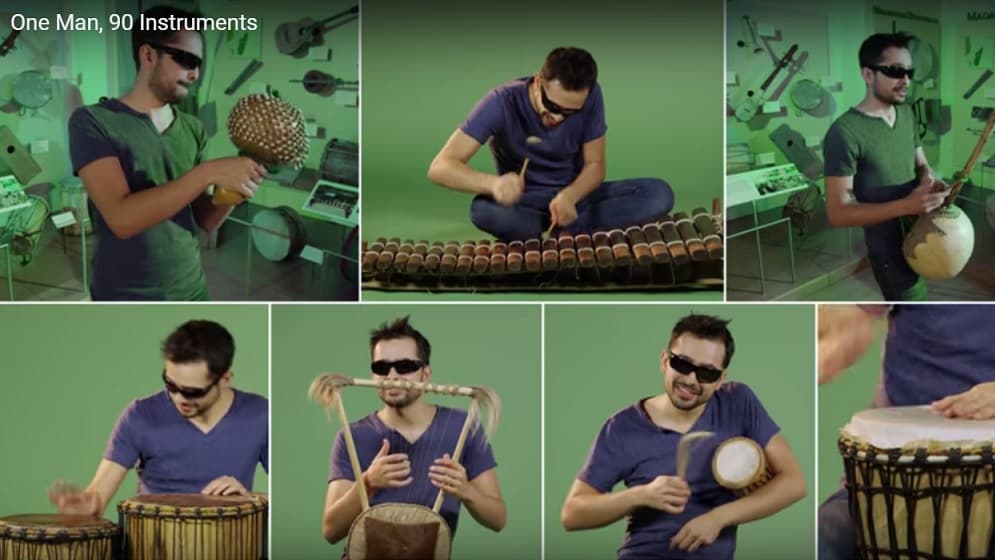 Un músico brasileño se lució tocando la famosa canción de Pulp Fiction con 90 instrumentos, algunos muy exóticos, de diferentes países del mundo