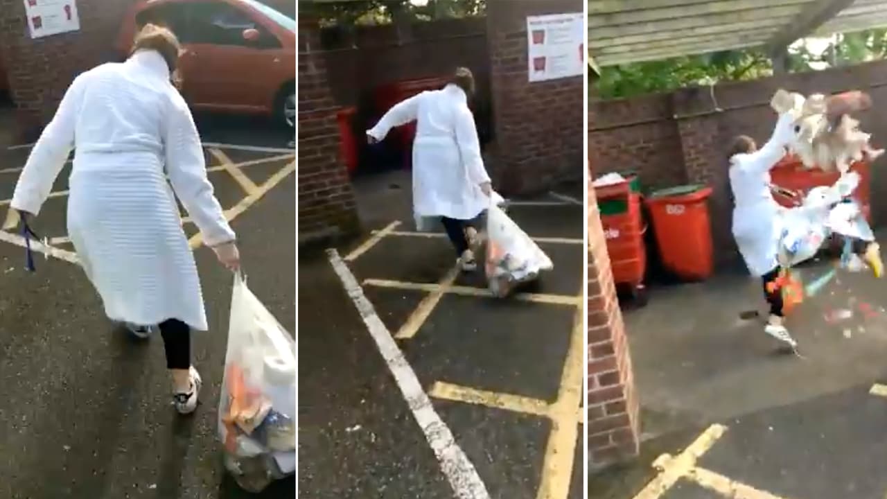 Salir a botar la basura puede terminar muy mal, especialmente cuando estás en bata y alguien graba ese instante.