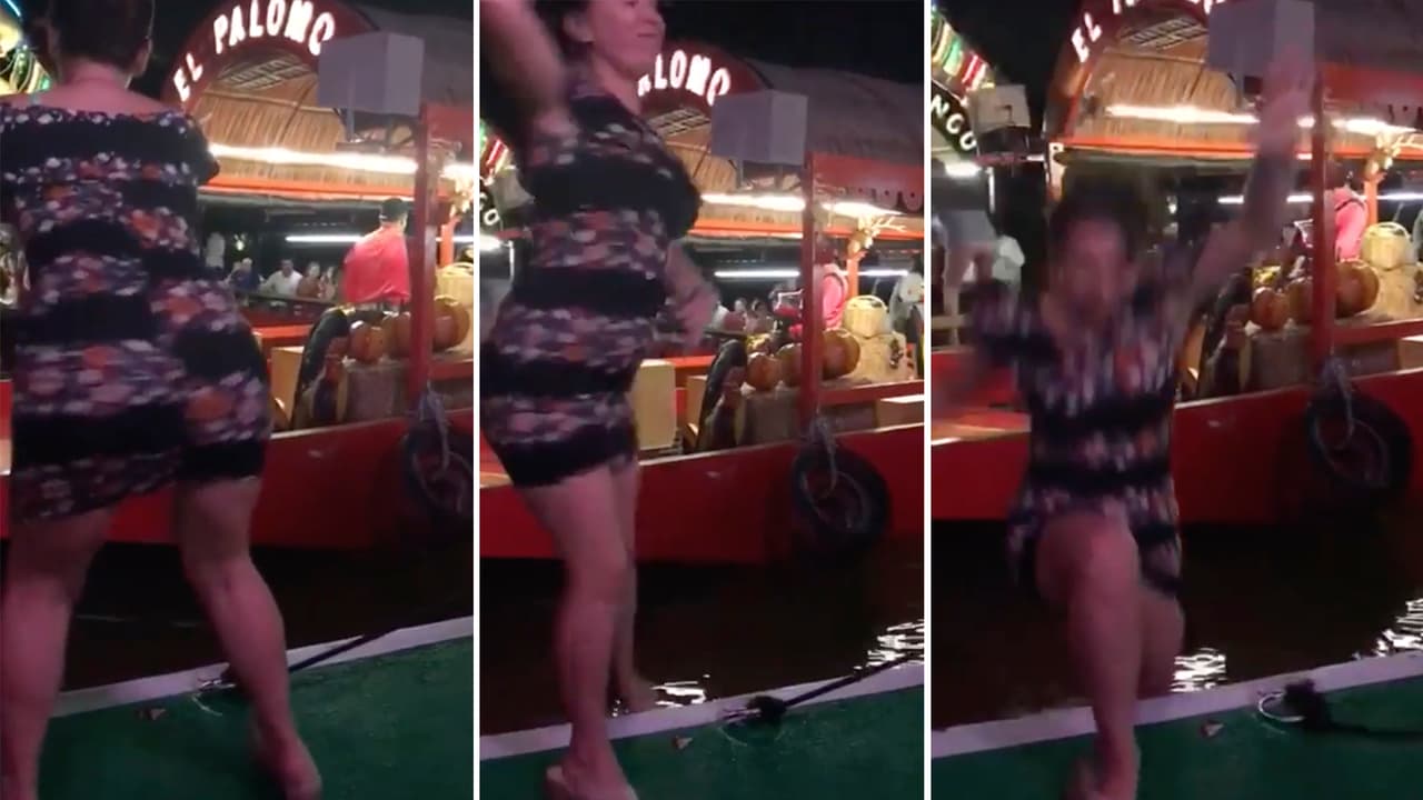 Esta joven bailaba intensamente sobre una trajinera en Xoximilco, Cancún, pero no midió sus pasos y terminó cayendo al agua. El curioso hecho se viralizó rápidamente en redes sociales y muchos ya la conocen como #LadyTakaTaka.