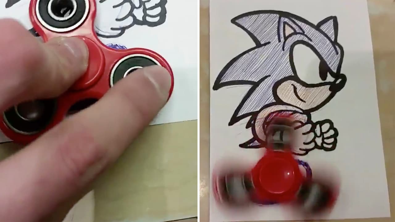 Al youtuber Evan Tingle se le ocurrió usar el juguete de moda sobre un dibujo de uno de los personajes de videojuegos más icónicos de todos los tiempos. El resultado se asemeja al movimiento de las piernas de Sonic.