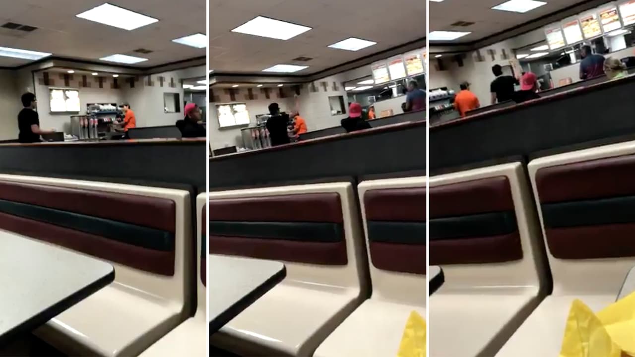 Tal parece que este joven se comió la hamburguesa más deliciosa de su vida y no escatimó al momento de felicitar al cocinero.