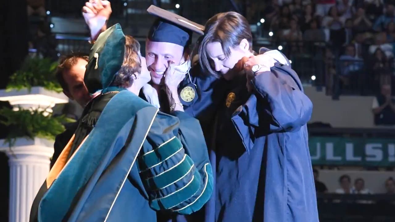Sam Bridgman sufre de una enfermedad neurodegenerativa que lo tiene en una silla de ruedas. Sin embargo, esto no impidió que cumpliera su sueño de graduarse en la Universidad del Sur de la Florida.