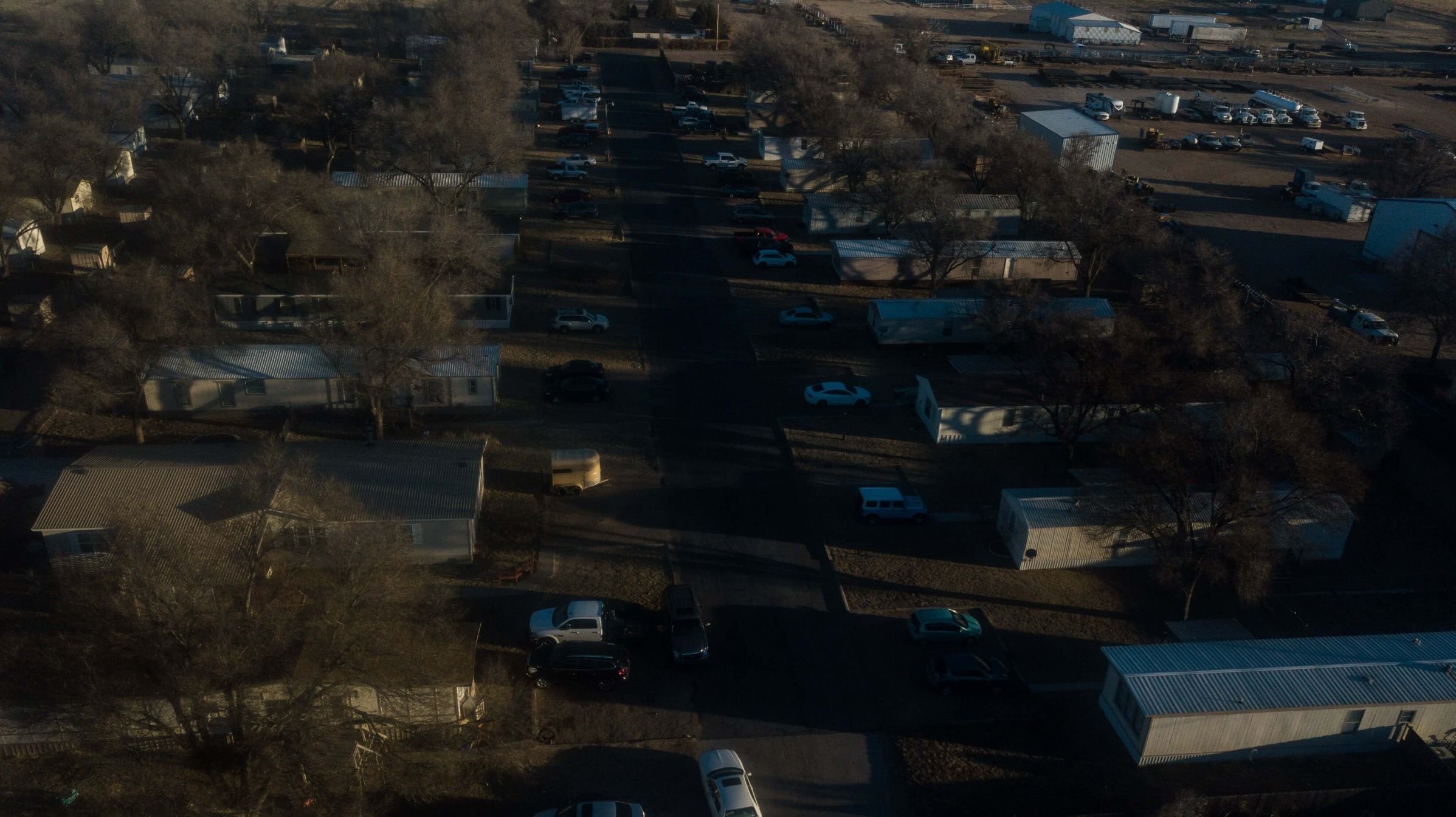 El complejo de viviendas para trabajadores H-2A más grande de Larsen Farms, donde vive Pablo, está escondido en mitad del campo entre árboles y almacenes de papas, a 20 minutos manejando de la sede de la empresa. Esto dificulta que los trabajadores puedan caminar hasta el pueblo más cercano y pedir ayuda.