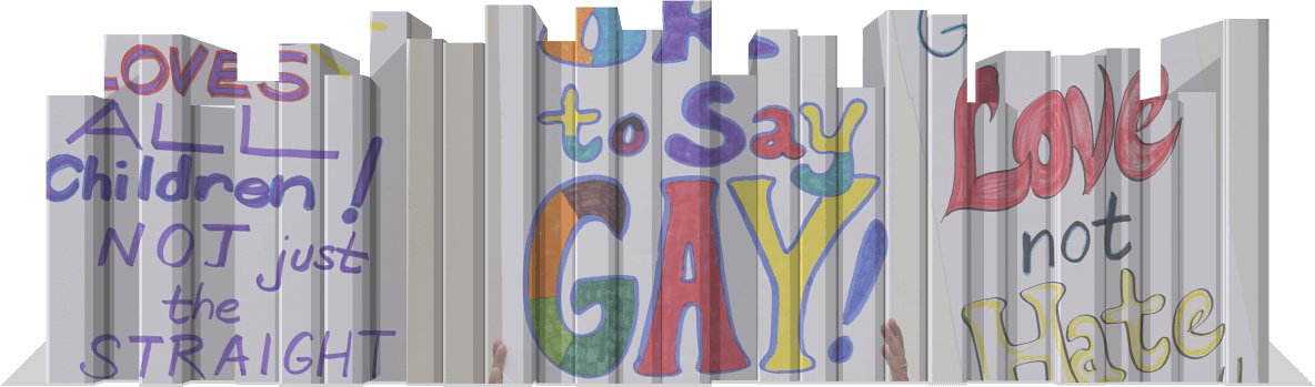 “Somos permanentes” y “las personas por encima de la política”. Son los mensajes que manifestantes mostraron en sus pancartas el 9 de marzo de 2022, mientras protestaron en la puerta de las oficinas de sus senadores en Florida luego de que aprobaran la llamada ley ‘Don’t Say Gay’. Jeff Kowalsky/AFP vía Getty Images