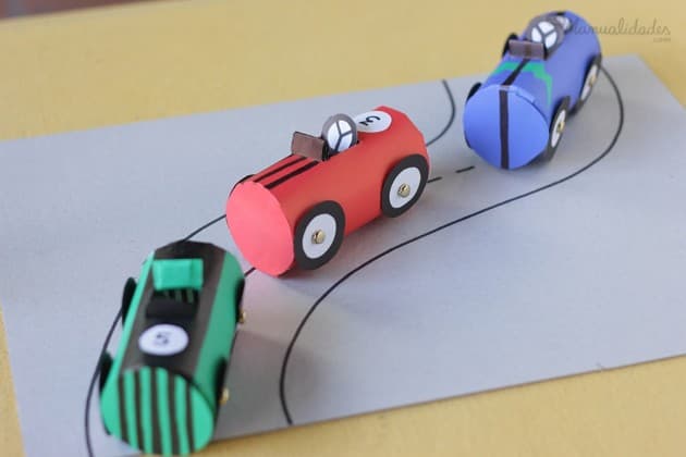 1. Autos para jugar hechos con tubos de cartón