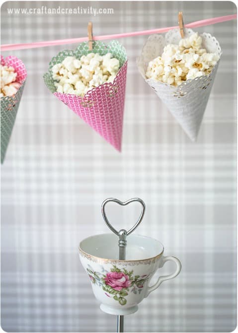 Crea conos de papel. Son ideales para los pochoclos o para saladitos.