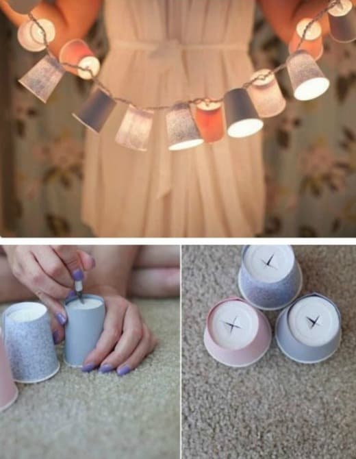 Arma tu propia guía de luces con vasos reciclados.