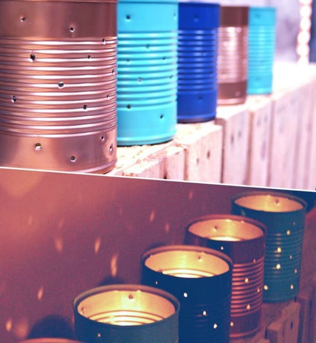 Candelabros reciclados... también pueden funcionar para una velada romántica.
