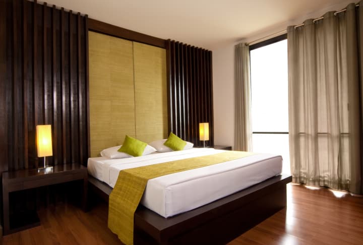 Un separador de ambientes tiene una obvia función pero lo cierto es que sirve para mucho más. Si cuentas con una habitación bastante amplia puede ser genial para utilizarlo como cabecero también. Te dará privacidad y sin duda será el elemento decorativo por excelencia.