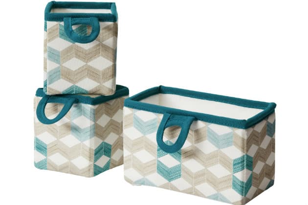 Organiza tus productos, cepillos o cosméticos en cajitas o canastas que guarden una misma relación de color que tu cuarto de baño. Con esta idea todo se verá bien organizado y darás un toque de color a tu decoración.